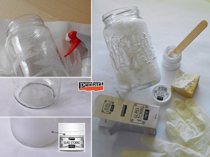 Нанесете върху повърхността, оставяйте я да реагира най-малко 15 минути, след това изплакнете с вода. Тя ще създаде матов, гладък слой върху стъклото, който може да бъде боядисан или декориран допълнително.
