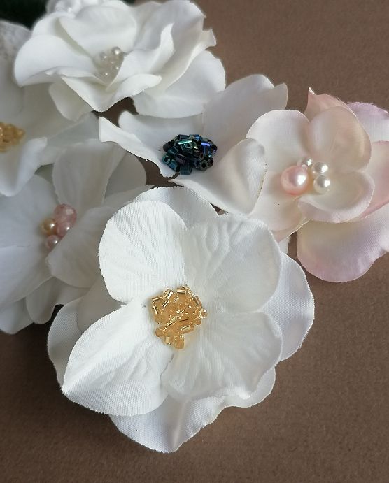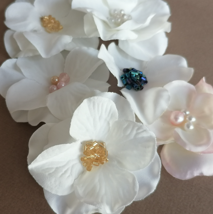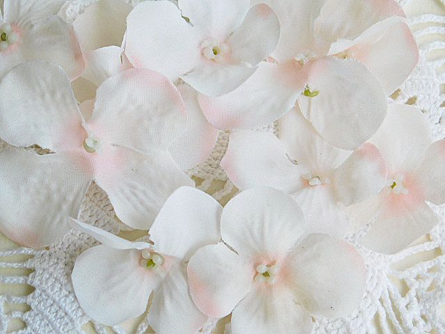 Цвят хортензия от плат - Крем и Нежна праскова Меланж - 12 бр.