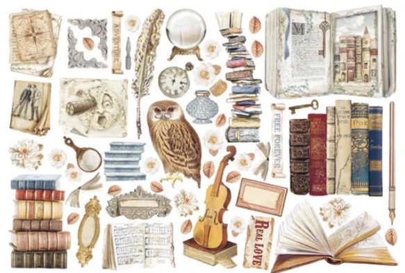Комплект изрязани елементи Метализирани и Самозалепващи - Vintage Library - 53 елемента