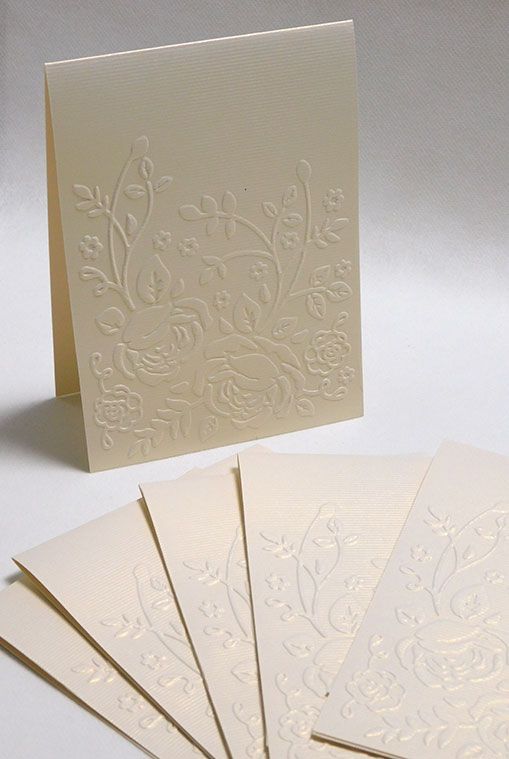 Комплекта включва 6 броя заготовки за картички или покани изработени от перлен картони и релеф Рози