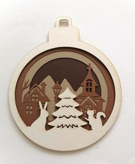 Многопластова топка за декорация включва 1 рамка от бирен картон и 3 броя основи от цветен картон, с който се постига впечатляваща триизмерност.