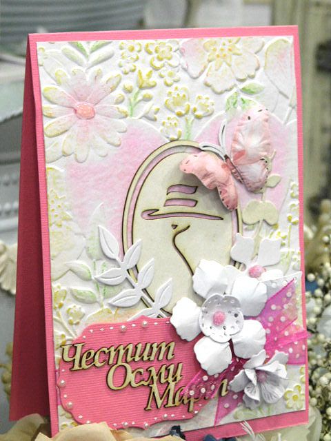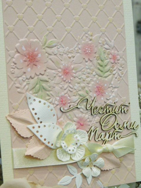 Картони за картички с релеф - Сърчица и цветя - 12 елемента