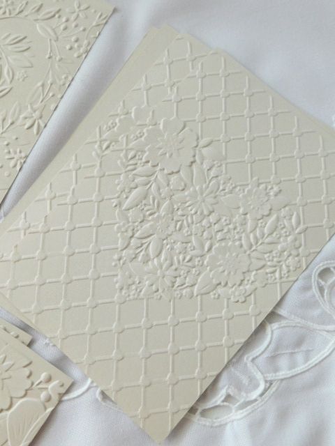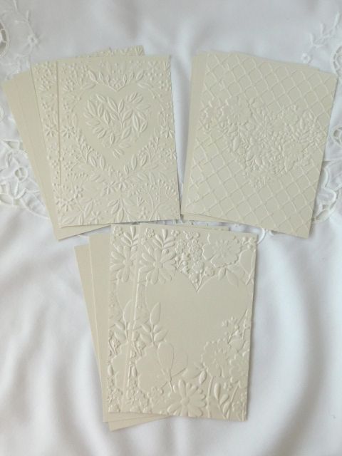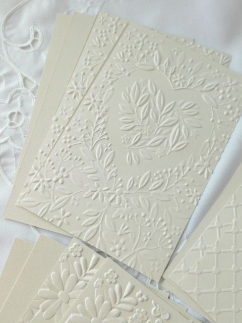 Комплекта включва 6 броя картони с 3 вида релеф (по два броя от всеки вид) подходящи за лицева страна на картичка или друг проект и 6 бр. гладки картони подходяши за гръб на картичката