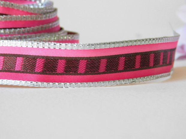 Панделка Сатен с метален ръб Ролка- Циклама - 20 м.