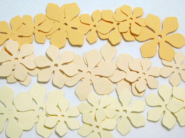 Цвятя - 24 бр изработени от три цвята картон 220 гр. в три размера 3,80, 3,20 см и 2,80 см диаметър