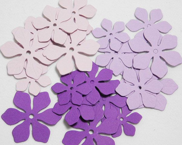 Цвятя - 24 бр изработени от три цвята картон 220 гр. в три размера 3,80, 3,20 см и 2,80 см диаметър