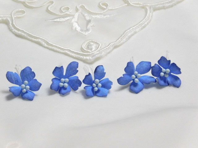 Ръчно изработени цветя от плат - Мини Синьо - 5 бр.