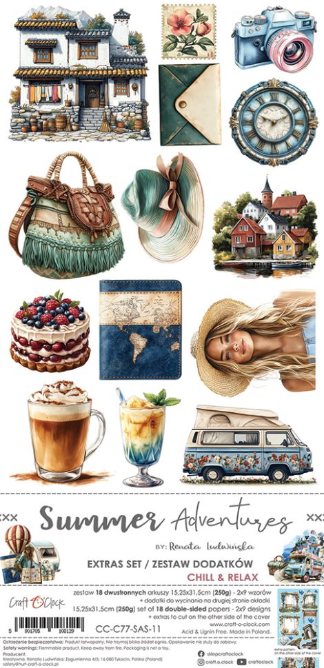 Дизайнерска хартия Summer Adventures MIX на Craft O'Clock - перфектна за картички, албуми и скрапбук проекти!