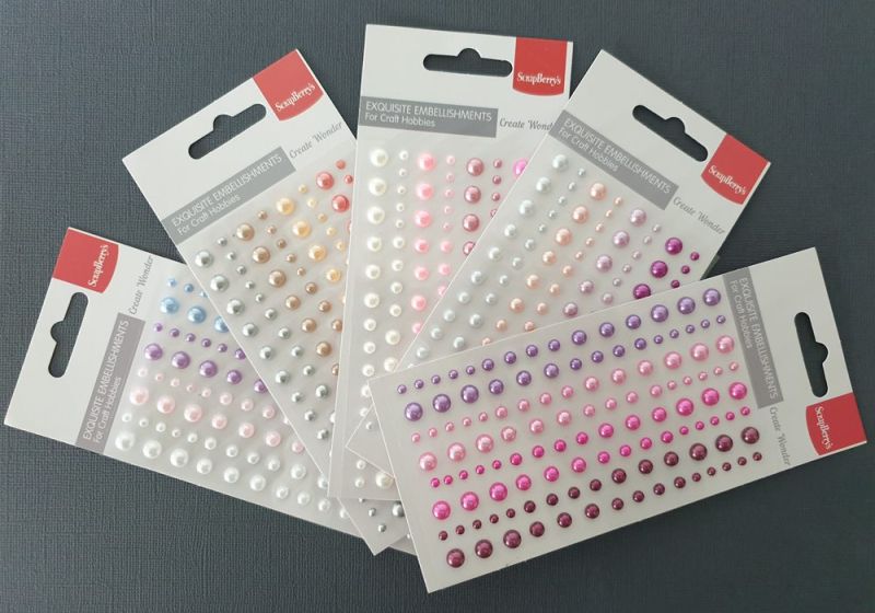 Комплект самозалепващи декоративни перли в четири цвята и размери от всеки цвят:
