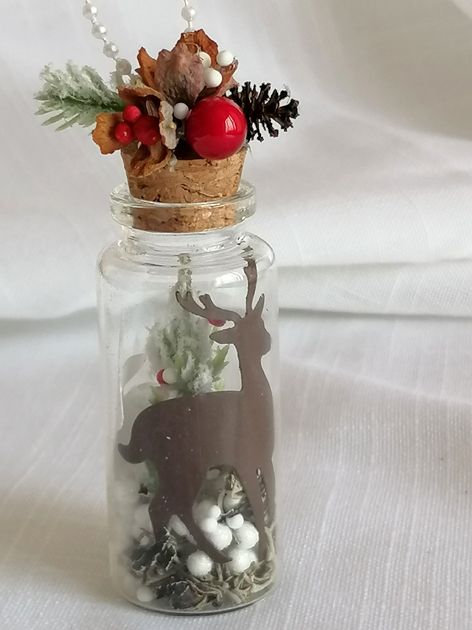 Ръчно декорирано стъклено шишенце / с възможност за добавн е на коледно късметче/