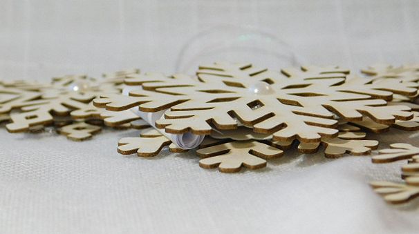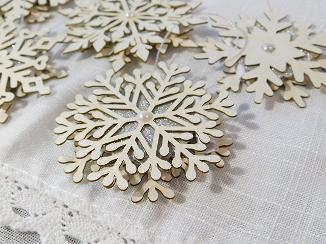 Комплекта включва всички елементи за изработката на 5 бр. късметчета висулки във формата на Снежинки: