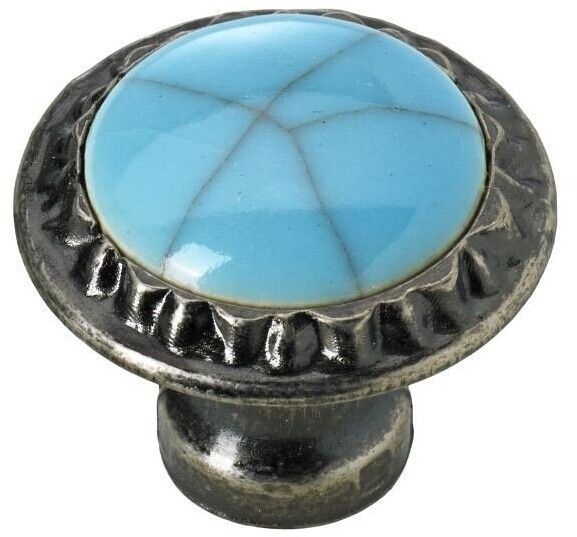 Цинкова дръжка лята под налягане, полирана в цвят антично сребристо и акцент от син порцелан.