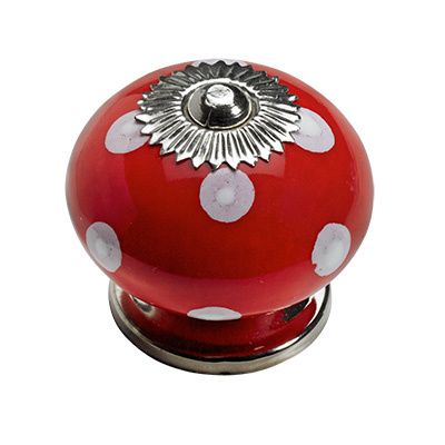 Мебелна дръжка - Червена на точки керамика Ø 40 x 36 мм