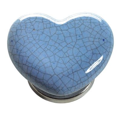 Дръжка - Керамична Синьо сърце кракле - 45 x 38 x 20 mm