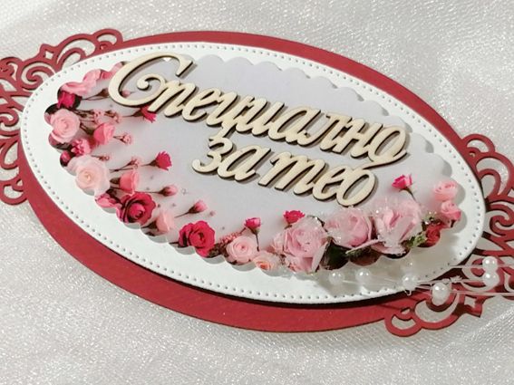 Ръчно изработена декорация за център на картичка, празнична опаковка или подарък.