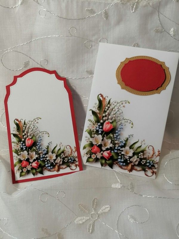 Комплект плик с вложка - Червено и златно Момина сълза- 15,70 х 10,00 см