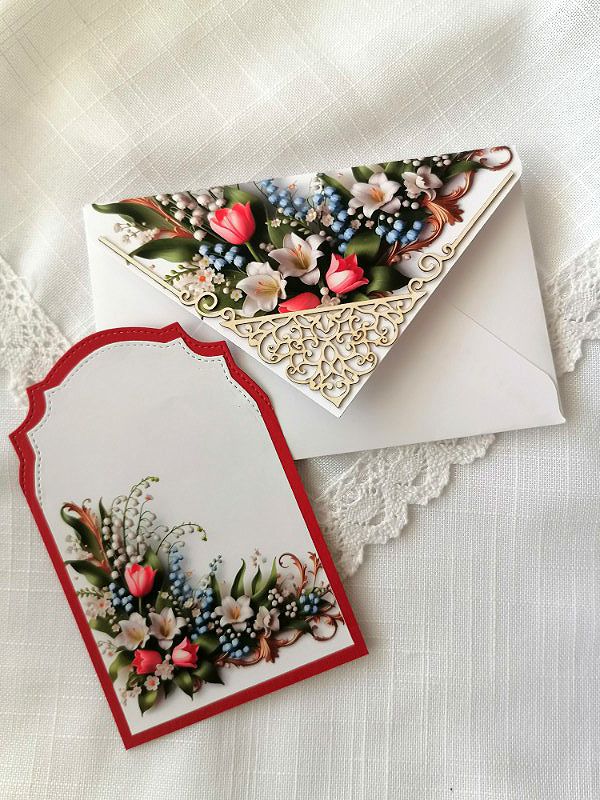 Ръчно изработен комплект от дизайнерска харти - Плик за паричен подарък или пожелание и вложка за надписване.