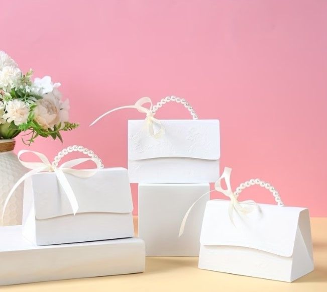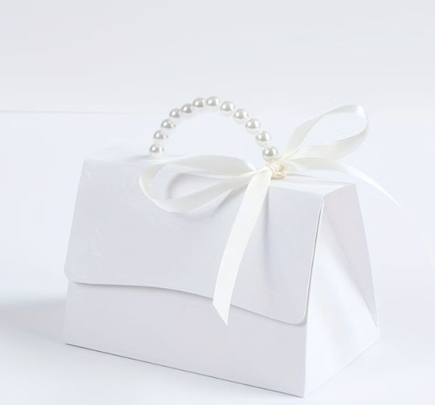 Подаръчна кутийка Чантичка с перлена дръжка - 13 см. х 9 см. х 7,5 см.