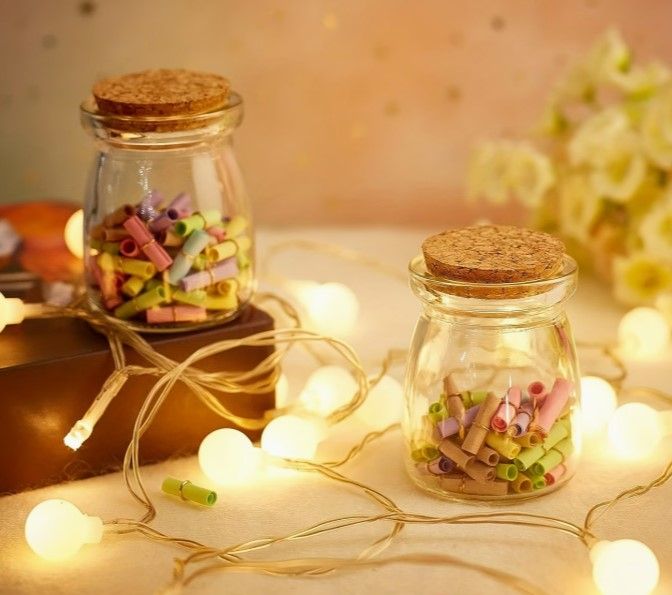 Стъклено бурканче с коркова тапа за декорации, свещи , подаръчета за гости, съхранение на продукти.