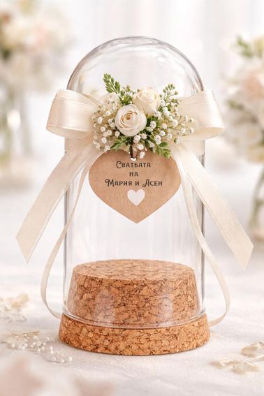 Стъклено шише с коркова тапа и обло дъно - за декорации, миниатюри , подаръчета за гости, съхранение на дребни елементи като мъниста, копчета, пайети.