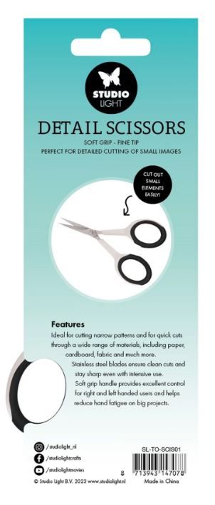 Ножици Essentials Detail с меки гумени ръкофватки и фин връх- изключително удобно и практична за рязане на малки детайли и елементи.