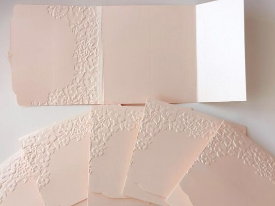 Тройно прегъната заготовка за картичка, плик или покана с релеф от перлен картон