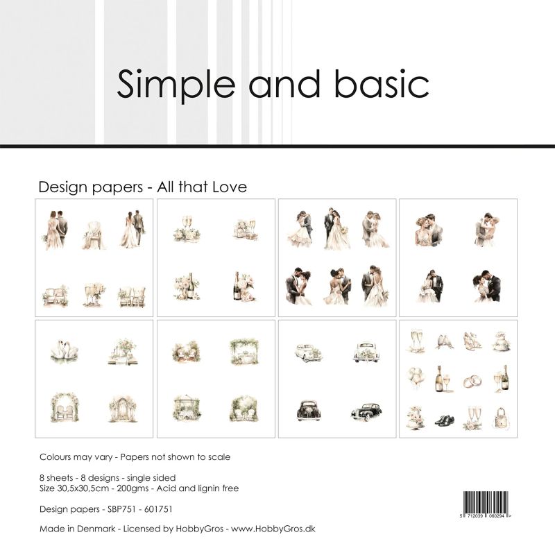 Комплект дизайнерска харитя All that Love на Simple and Basic е перфектена за картички, албуми и скрапбук проекти !