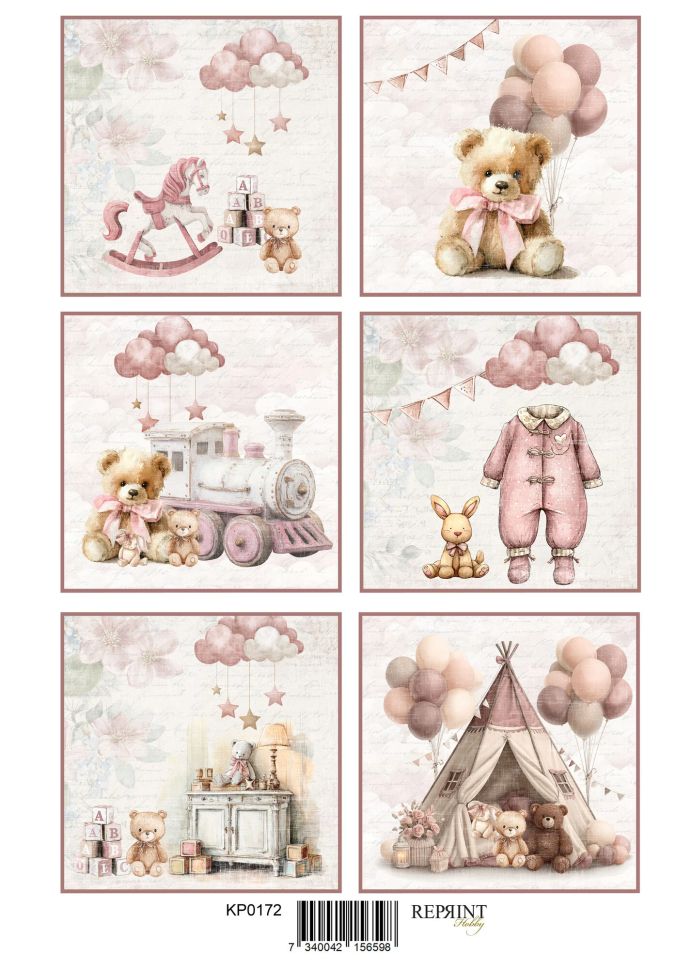 Дизайнерска хартия Happiness Baby Girl на Reprint е перфектна за картички, албуми и скрапбук проекти !