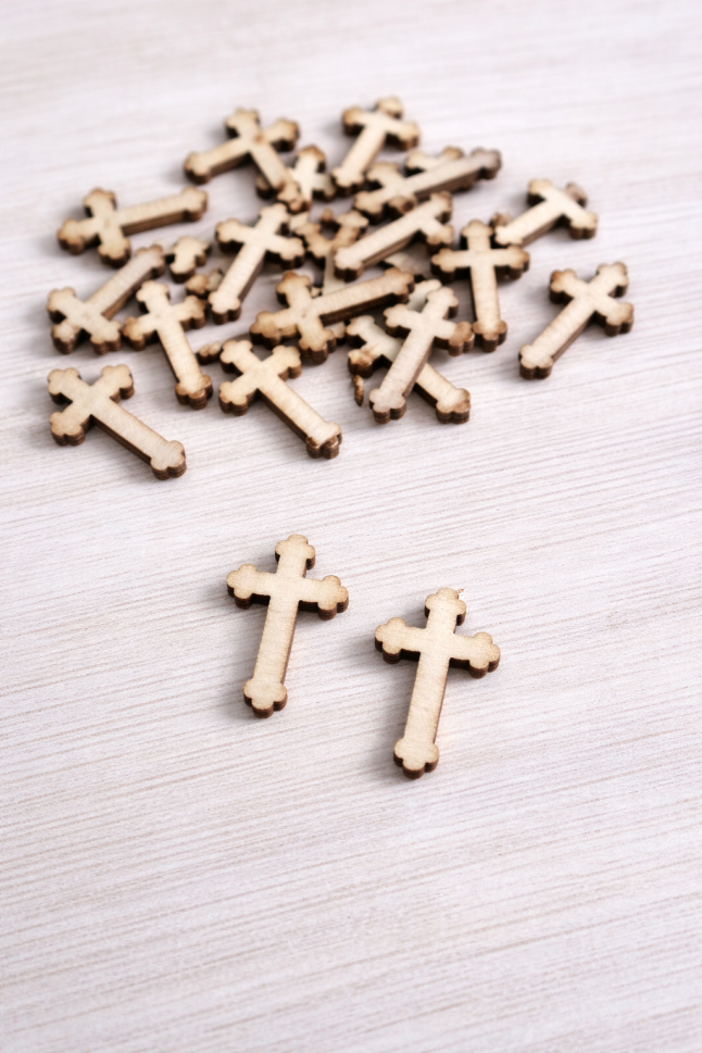 Комплект 10 броя кръстчета от дърво подходящи за декорация на покани, подаръци за гости и албуми за Свето Кръщене.