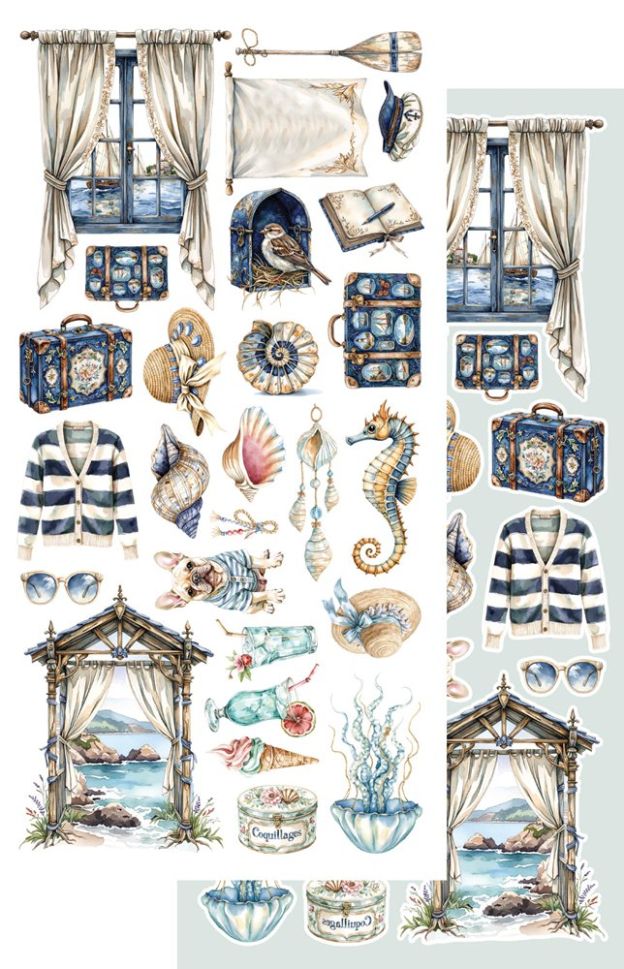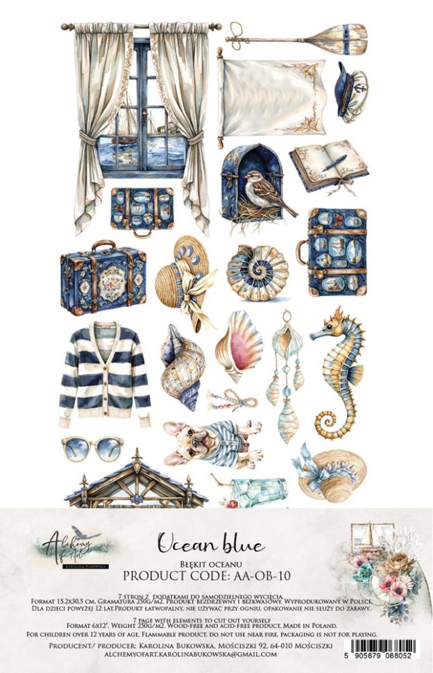 Представяме ви Комплект дизайнерска хартия с елементи за изрзване "Ocean Blue" съкровищница от морски красоти, уловени върху всеки лист. Този изключителен комплект от 6 двустранни листа ще превърне вашите творчески проекти в истински шедьоври. Вдъхновен от безкрайните сини нюанси на океана, спокойствието на крайбрежните пейзажи и носталгичния чар на старинните морски истории, "Ocean Blue" ще събуди сетивата ви и ще ви пренесе на едно незабравимо пътешествие.