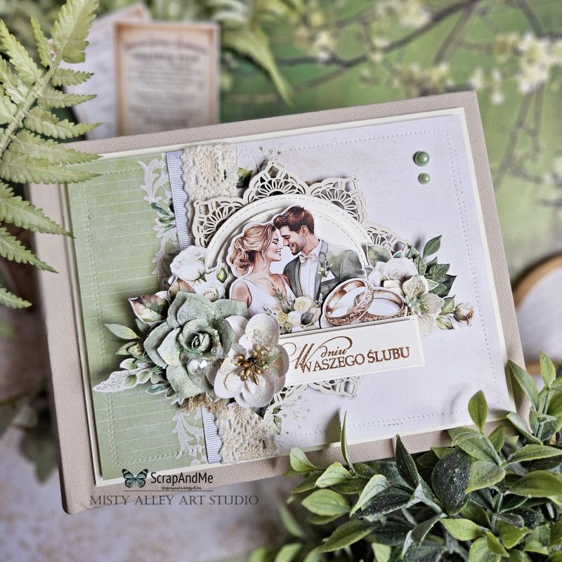 Всеки елемент е създаден с внимание към детайла, предлагайки богато разнообразие от мотиви. Открийте нежни бели цветя, елегантни рамки, младоженци, сватбени коли и арки. Комплектът включва още изящни сърца, кафези с пички, сватбени халки и флорални композиции с нежни бели рози и свежа зеленина. Меките, пастелни нюанси на бяло, кремаво и приглушено зелено придават изтънченост, идеални за shabby chic проекти.